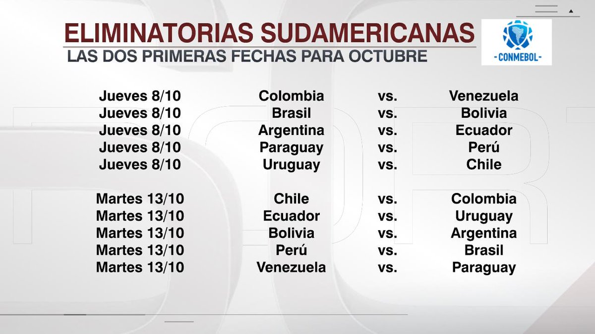 Son partidos difíciles, como en todas las eliminatorias vamos a tratar de sacarlo adelante. Desde la conmebol confirmaron que el certamen. Acá te tienes la tabla como guía con cada partido, fecha y horarios de la jornada 5 de las eliminatorias sudamericanas 2020. Horarios oficiales de la competición: Diez selecciones disputarán las eliminatorias sudamericanas a la copa mundial de fútbol qatar 2022, que arranca este 8 de octubre.